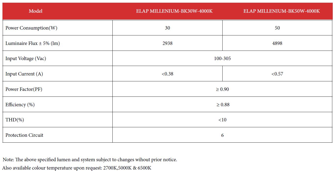 • High output efficiency up to 97 lm/w, Total 50W Power Consumption
